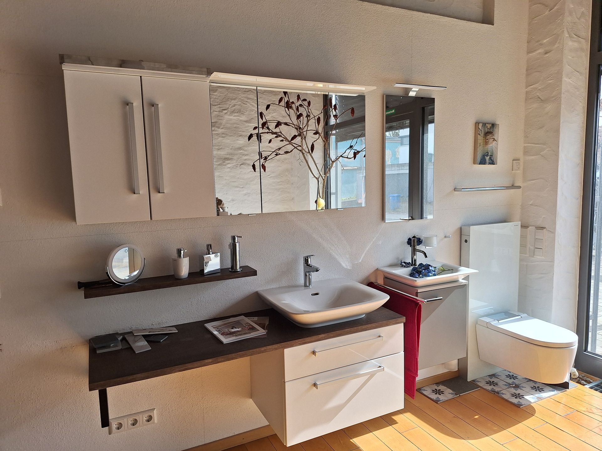 Auf mehr als 100 Quatratmetern erwartet Sie eine schöne Auswahl an Badmöbeln, Waschtischen, Duschkabinen, Fliesen und Accessoires. Die Vielfalt der Marken ist groß. Ideal-Standard, Villeroy und Boch, Duravit, Inda, Heiler, Grohe, Hansa, Geberit, elements, Keramag, repaBAD, Keuco und viele mehr....